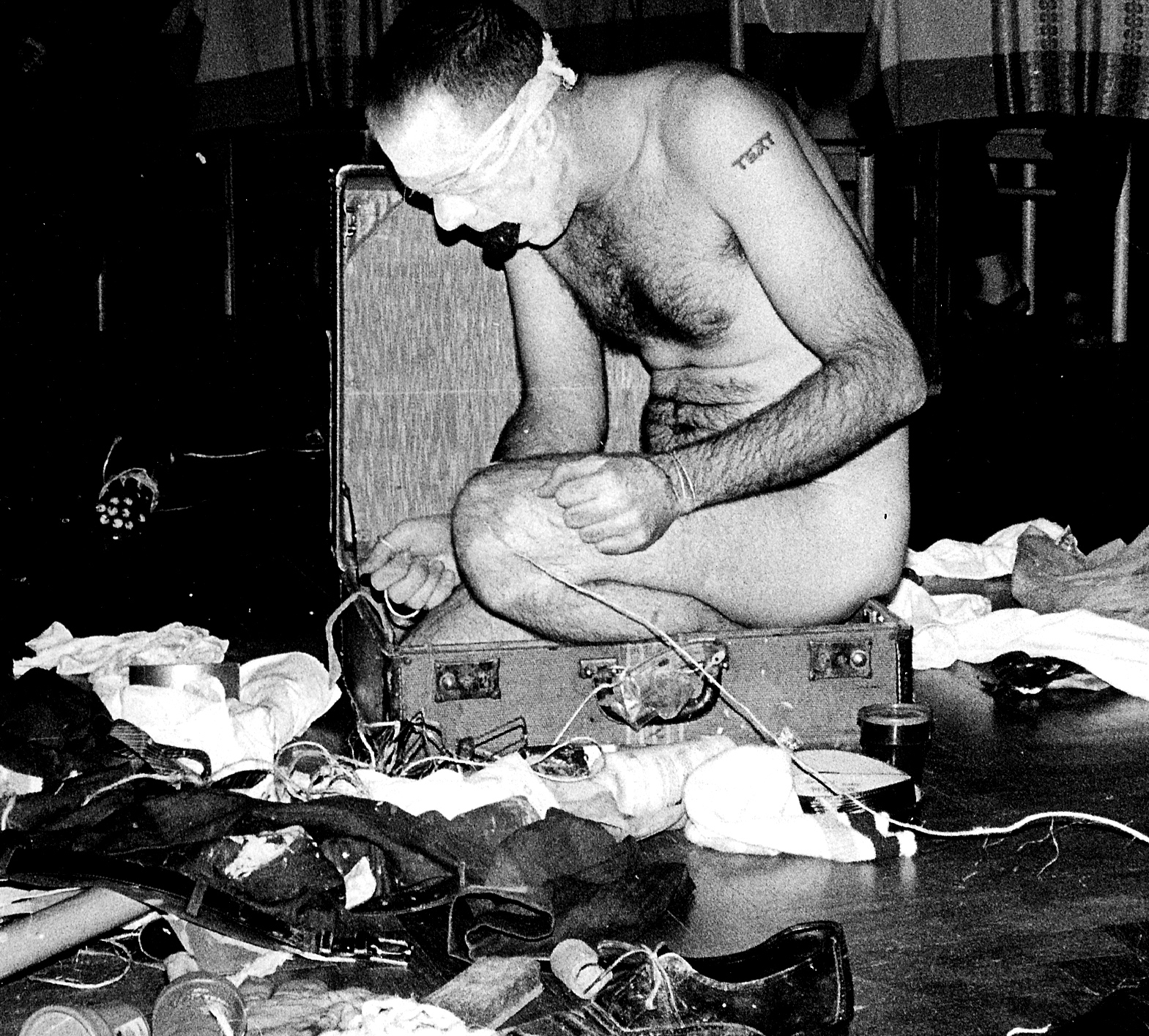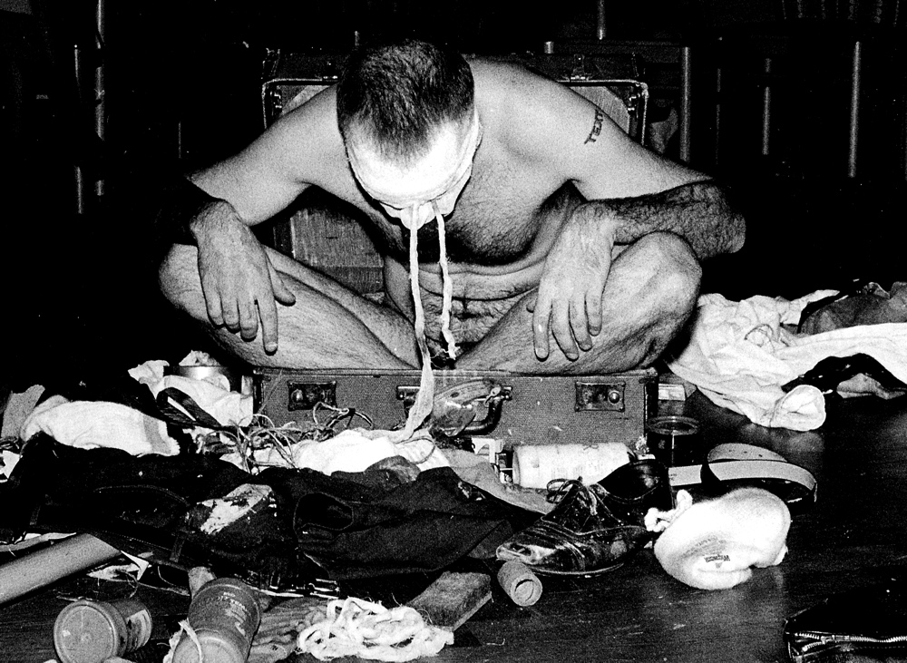 I decide that the only thing I am capable of in that circumstance is trusting my instincts completely. I put everything out of my mind and, having decided for convenience' sake to perform in the auditorium after the disco party finished, I simply crawl on hands and knees into the room in my street clothes, with my suitcase on my back and no plan at all.