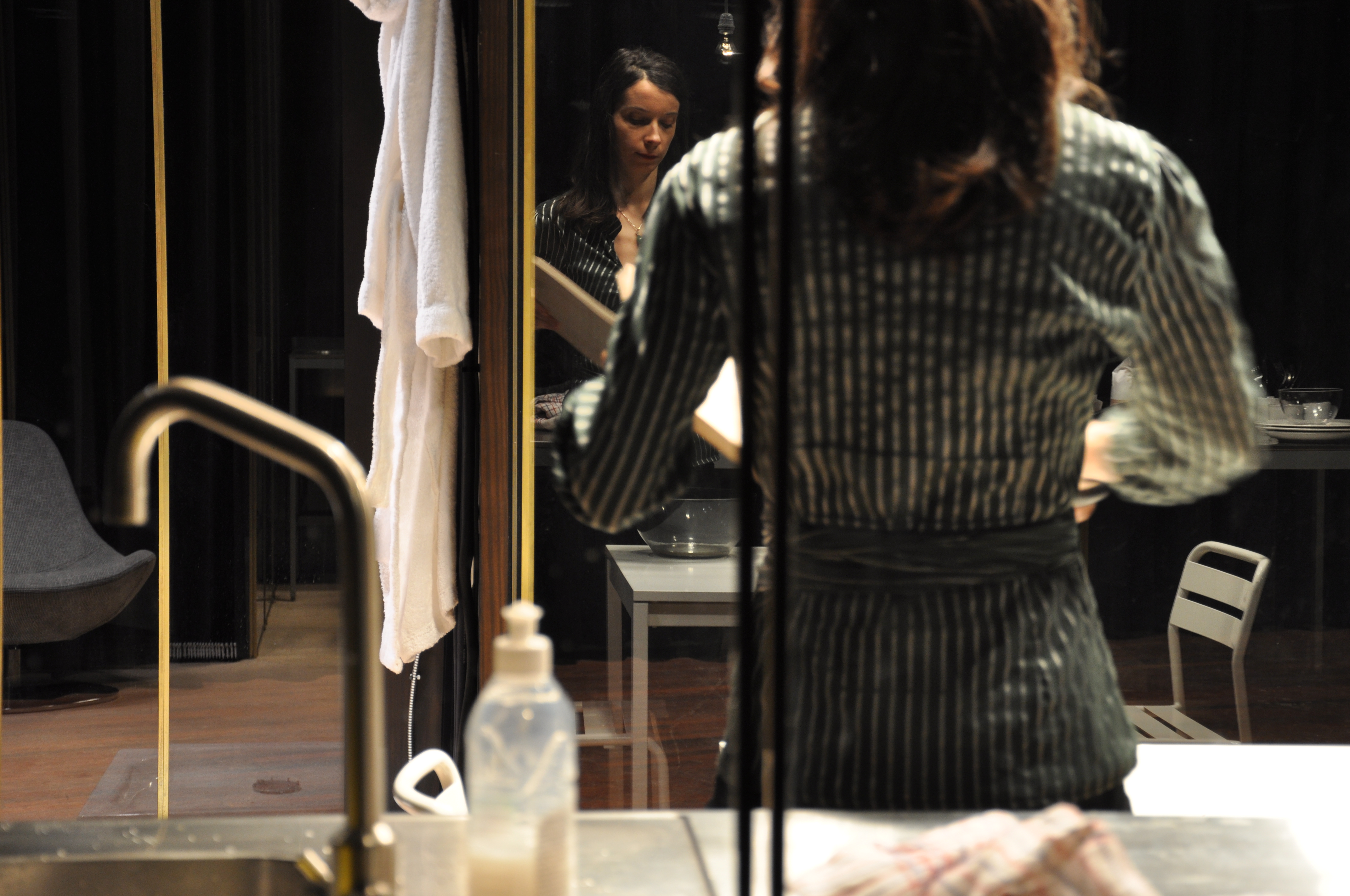 Daydream House explores the tension between real and fictional space. The position of the public constantly shifts: from watching to being watched, from taking distance to being involved, from visitor in a gallery space to an audience member in a theatre surrounding. While zooming in on ordinary, every day, domestic actions and by playing with real time and the power of story-telling, the audience is caught into a paradoxical game in which it gradually moves and takes over the stage.