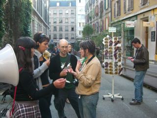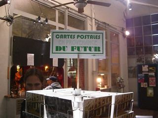 Postcards from the Future makes use of postcards to immor- talize daily urban scenes. These scenes are staged twice with the help of a group of hired extras. The first staging is a photo shooting during which the scene in question is simulated and pictures for a postcard are taken. The post- card is then printed and distributed throughout the city. On the traditionnal caption of the pictures, the location at which the photograph has been taken is indicated, along with a specific date and time located in the future. The postcard so invites whoever receives it to come to a specific place at a specific moment.
