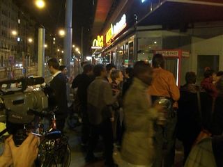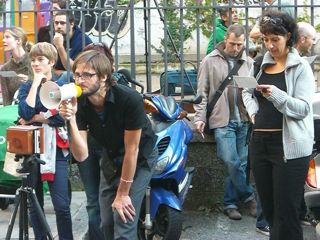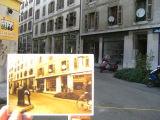 This very moment is when the second staging (a perfor- mance) takes place: The same extras, wearing the same clothes reproduce the exact same scene in front of those who have come to the appointment. But this time no pic- ture is taken. Instead, the characters of the postcard emerge from the normal street life of the place, reappearing to repro- duce a situation which contains the exact same snapshot as the one captured on the postcard. The action (a genuine choreography as it were, involving up to almost a hundred extras) is spectacular only to those who are in possession of the postcard, for it is, as such, a mere reproduction of what could take place any day on this location...