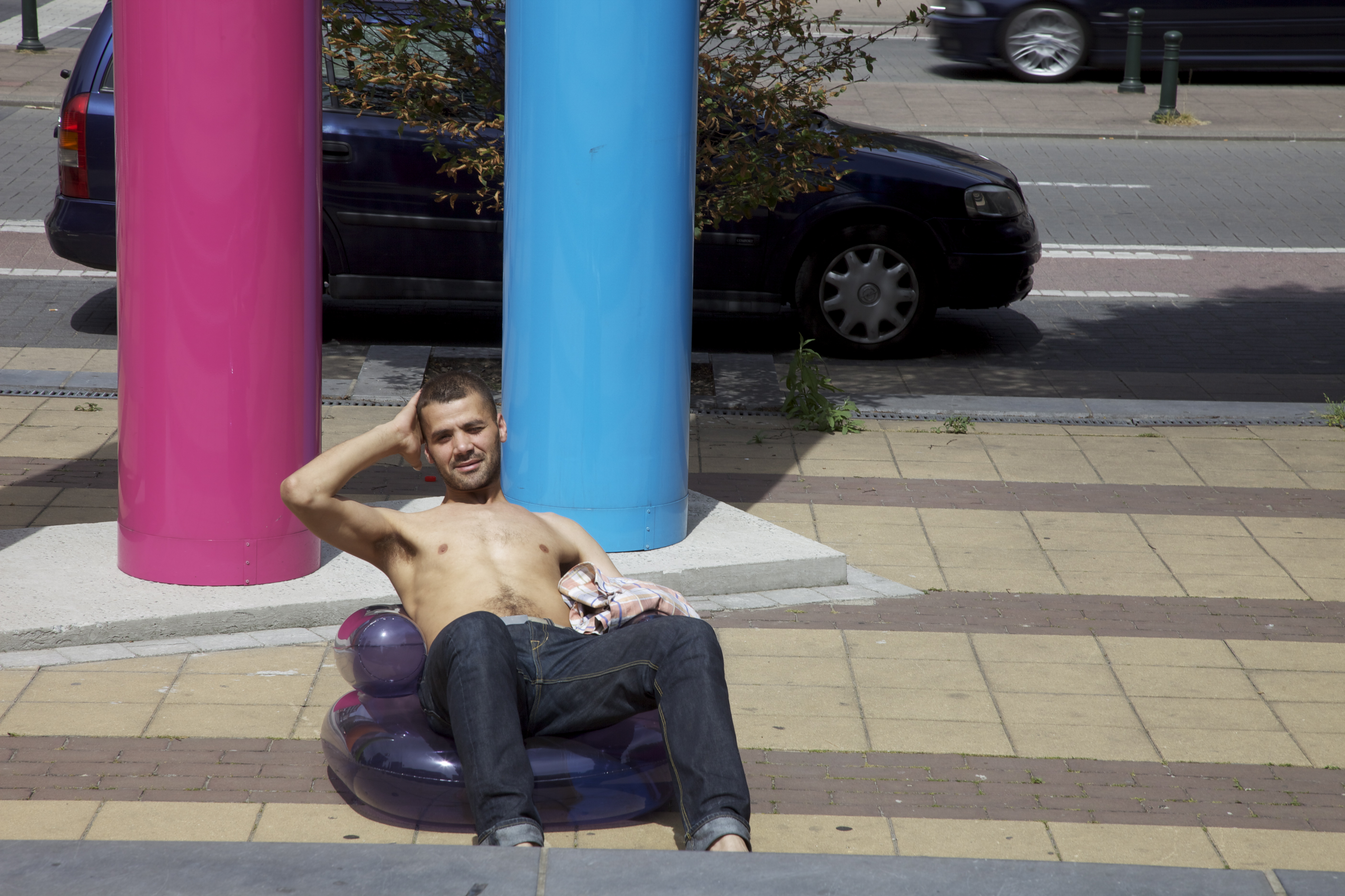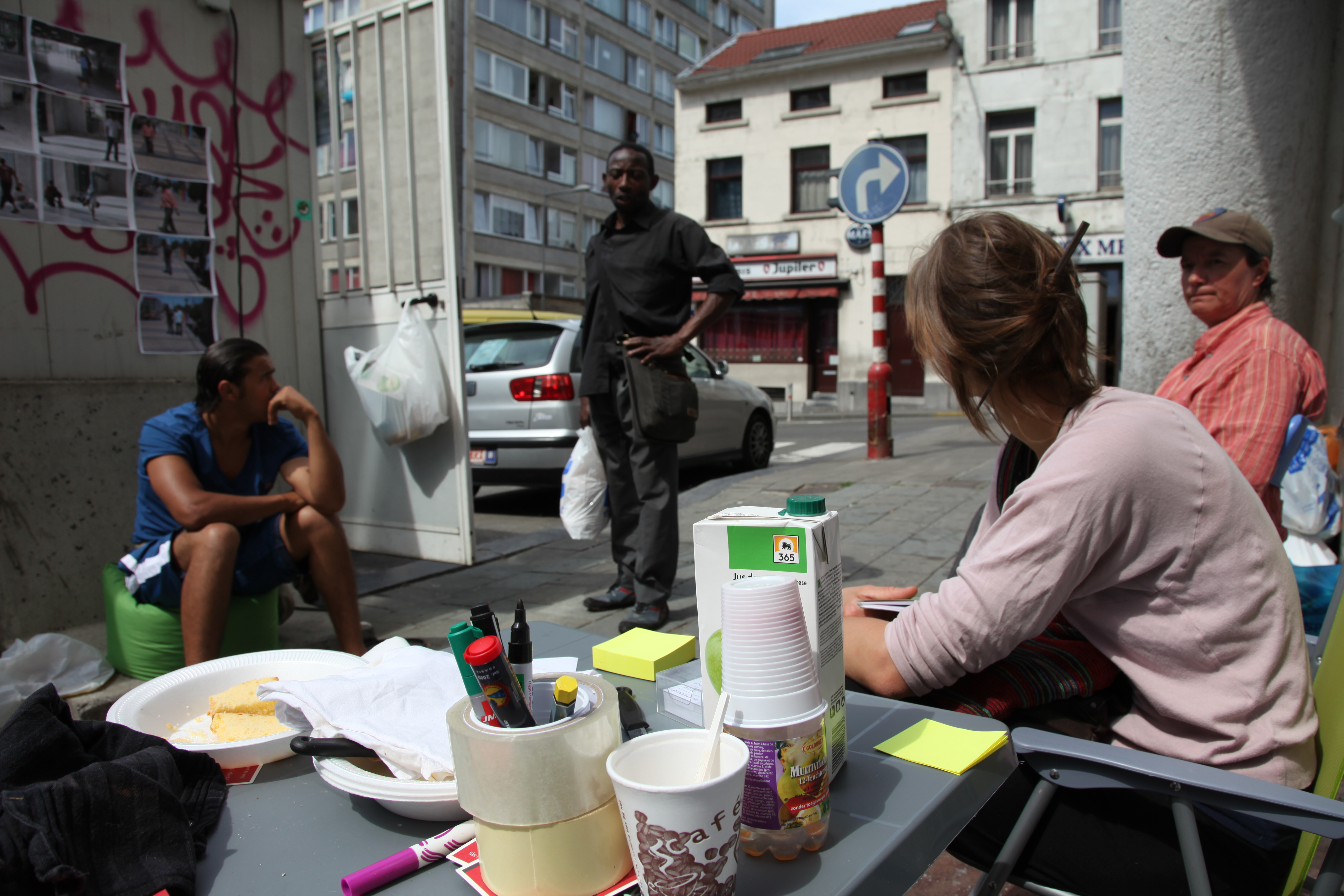 The core-interest is to propose and make artworks together with people that find each other through a loose structure, based on affinity. This affinity is not there from the outset but man-made by an artificial behaviour: 'hanging out' regularly next and with people and in places at first sight completely unacquainted, the artist becomes present in a reality which naturally wouldn't become familiar: an 'annex' of a reality out of natural touch.