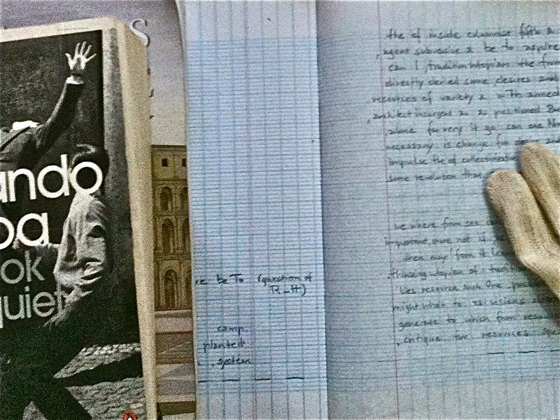 • calligraphy / 2010 : a compilation of texts on 'changeability' found in books or online, written by hand (pencil) into marrokane exercise books, from right to left and from bottom to top. To be continued and copied. --> picture 5