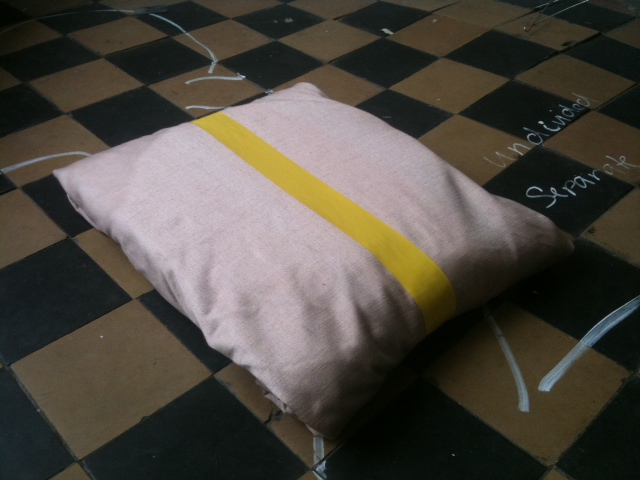 • seat / since 2012 : seat cushions made from materials, found on location. (i.e. soft worn out grinding wheels, old curtain and tape) --> picture 3