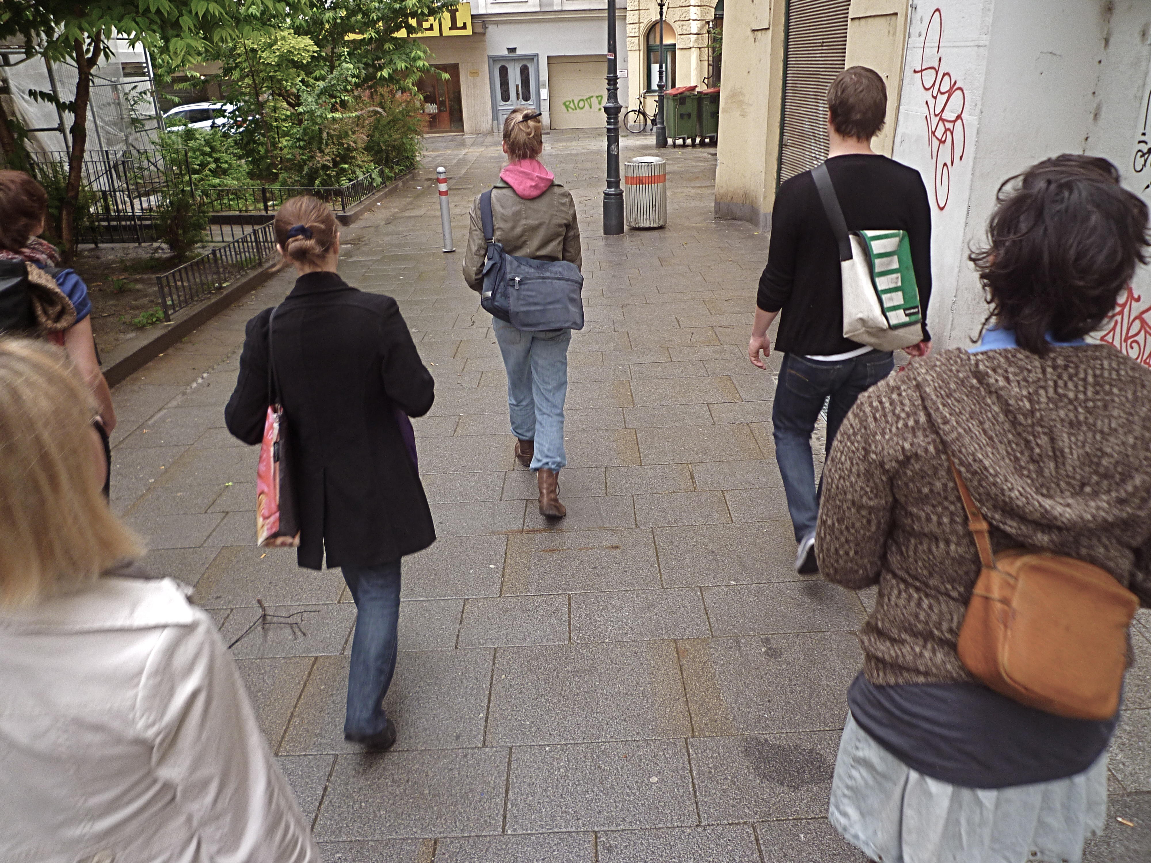Photographer David Bergé and performer and choreographer Satu Herrala have created a walking practice in which they invite participants to join them for a guided walk. Small groups of people move in silence through public, semi-public and private locations, observing and discovering the familiar and hidden paths, not only as ways to places but as places themselves. The dramaturgy of the routes has been chosen with specific focuses and viewpoints in mind such as light, architecture and question about ownership of the urban space; to whom do these paths belong?